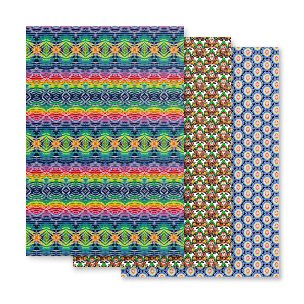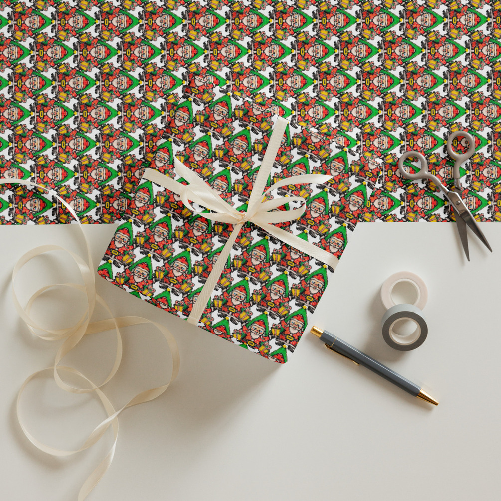 3 rolls of 28”x19” wrapping paper in 3 different artworks
